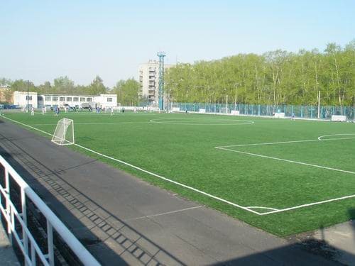 Виды работ: Устройство искусственного травяного покрытия, монтаж западной трибуны, устройство освещения стадиона.